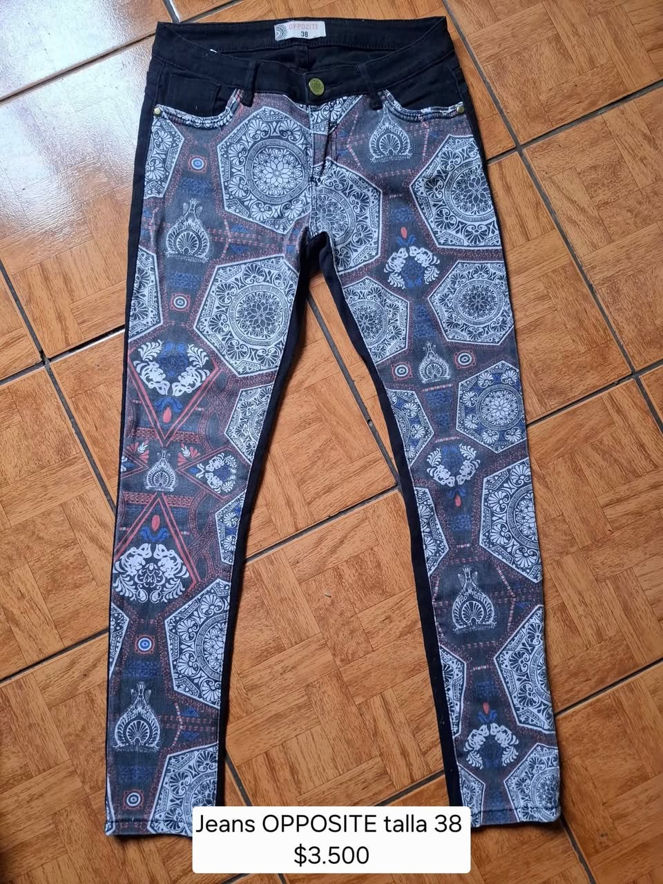 Jeans negros con detalles en las piernas oposite talla 38 $3.500