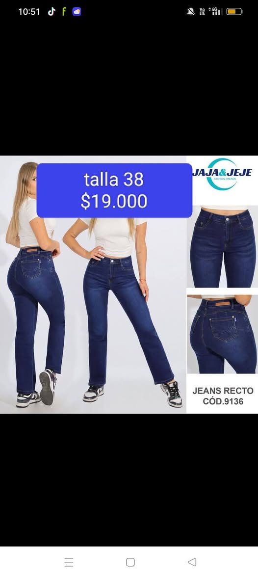 Jeans elasticados tiro alto push up. Talla 36 que calza para talla 38. Precio $20.000.