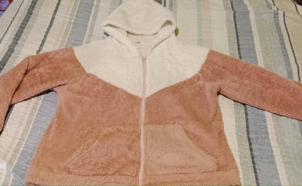 Polerón con capucha en colores blanco y rosado. Talla L-XL. Precio 4500.