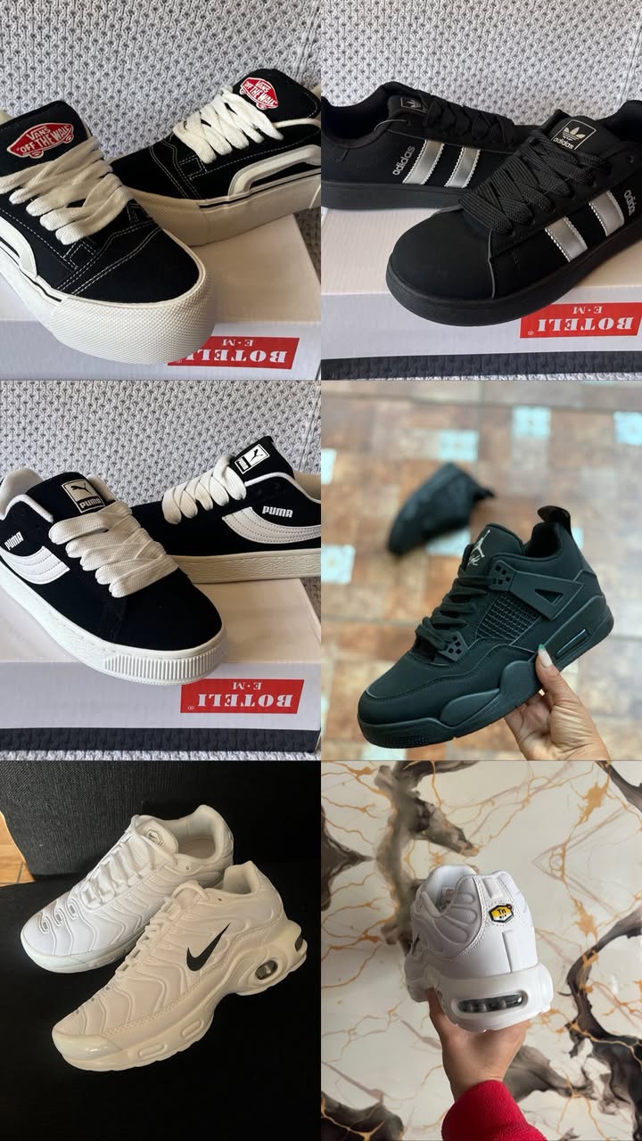 Zapatillas de diversos modelos con numeración disponible desde la 35 a la 43. Cuentan con entrega inmediata y algunos modelos se encuentran en oferta.